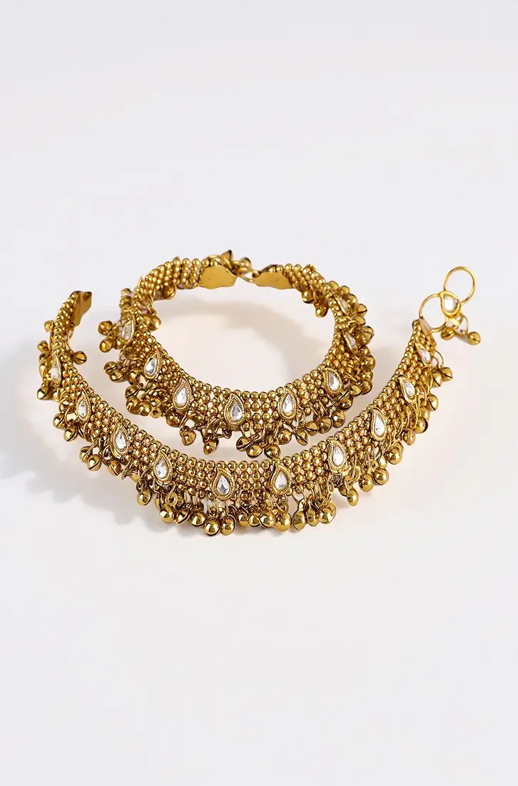 Elevate your everyday and festive look with the Shining Diva Fashion gold plated anklet set. Designed with a stylish bead chain and adjustable fit, these no-stone anklets offer a perfect blend of elegance and comfort. Lightweight yet durable, this pair is ideal for daily wear, parties, and traditional occasions. Proudly made in India.